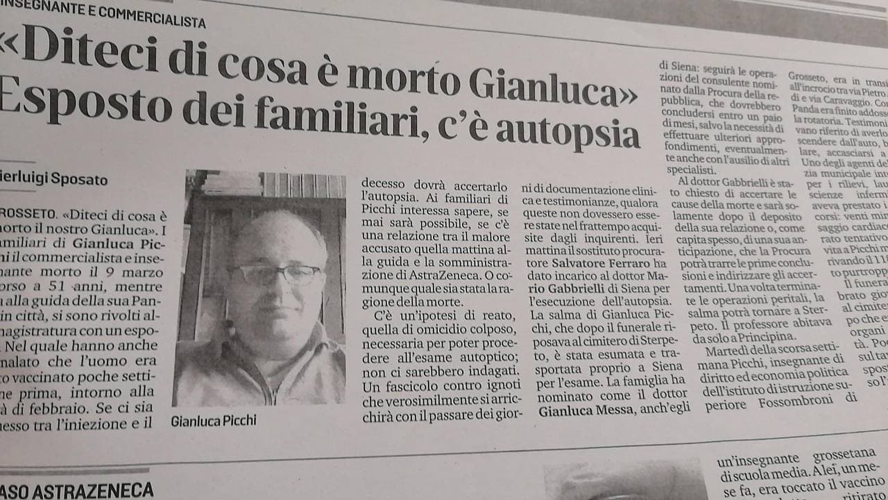 60)- Bologna: Giuseppe Morabito, professore di 61 anni, aveva ricevuto il vaccino contro il Covid di AstraZeneca 10 giorni prima di morire.