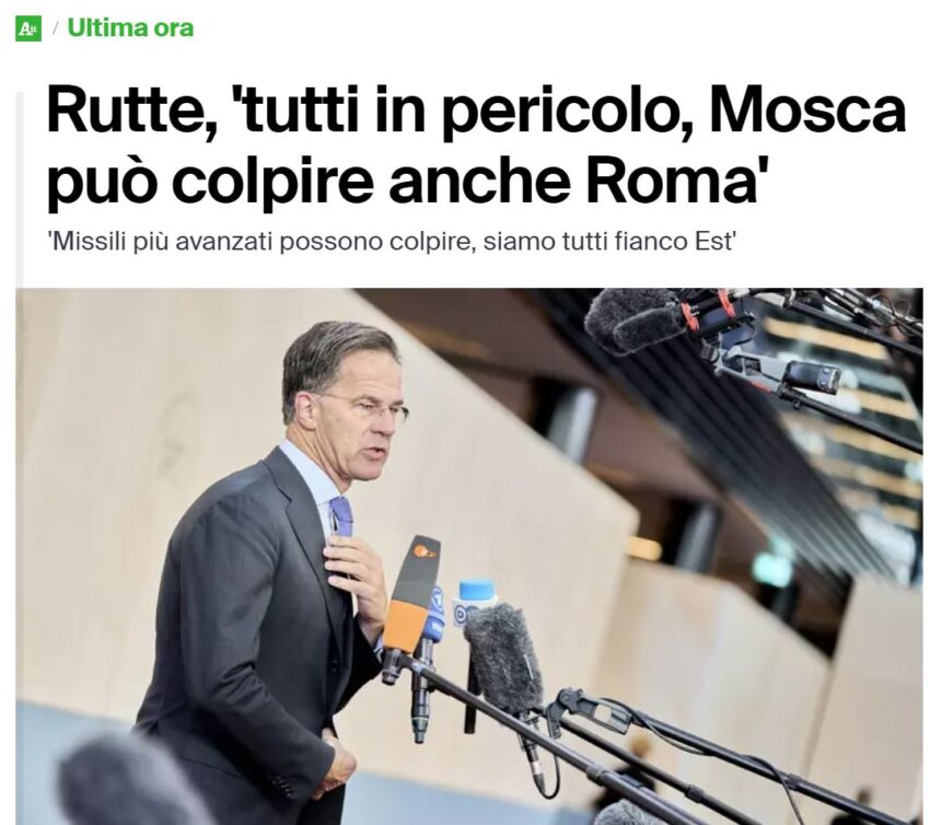 La Russia non ha alcun interesse a colpire Roma. Non lo farà mai. Rutte lo sa benissimo. Eppure ha scelto lo stesso di pronunciare quelle parole. Perché senza paura la NATO non esiste.