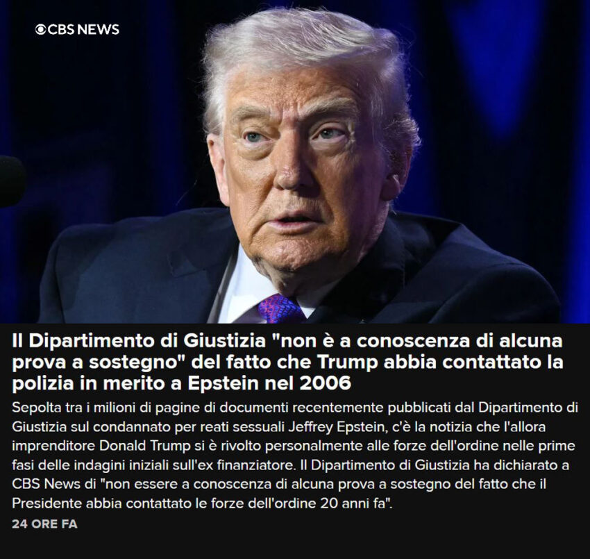 Interpellato da CBS News, il Dipartimento ha precisato di non avere riscontri oggettivi che confermino tale contatto. In altre parole, nei documenti non risultano prove indipendenti — come registrazioni, note ufficiali o altri elementi verificabili — che attestino che Trump abbia effettivamente chiamato le autorità circa vent’anni fa. In pratica, non esistono documenti ufficiali che confermino la telefonata, oltre al racconto dell’ex capo della polizia.