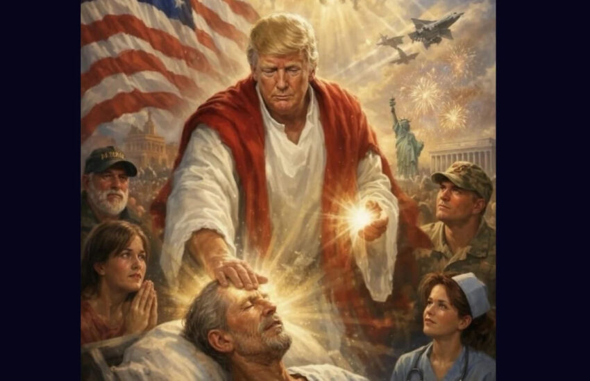 Donald Trump in pieno delirio di onnipotenza pubblica un’immagine generata con intelligenza artificiale in cui si raffigura come Gesù Cristo.